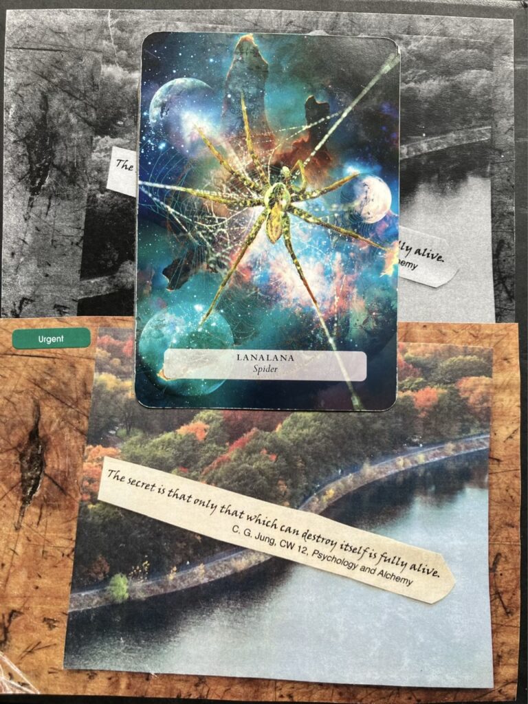 Wonderful words about the image are on the other side of it, and the card does live still in one of my journals, where from time to time I am called to remember exactly what those words were… but for now, I will just share that from where she sits in the middle of her web, LanaLana weaves the universe into a coherent, related wholeness.